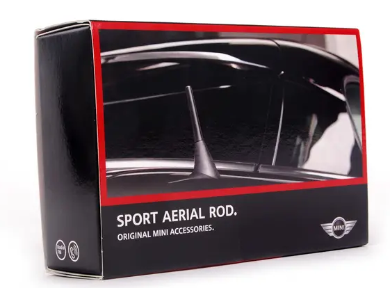 Mini Cooper. This antenna replaces the existing external vehicle antenna and has a sporty- shorter appearance. At 105mm in length- the Sport Antenna is significantly shorter than the original antenna. Product Highlights / Benefits: Emphasis on design without sacrificing functionality- Sporty and unique appearance- MINI tested and approved- Perfectly matched to MINI radios- Direct replacement for the stock antenna- Lower overall vehicle height. Hardtop, with sport. 2007-13 hatchback, 2009-15 convertible, 2008-14 clubman, without convertible, with sport.